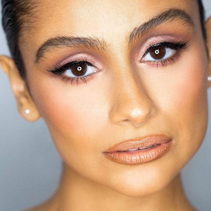 Bring on the bronze by blending matte nude shadows into your crease and coating your lids with a shimmery light brown shade. It’s all about nude lip liner and the perfect bronze lipstick to perfect your nude pout. Top it off with a shimmering lip gloss and highlighter on your cupid’s bow for the ultimate bronze boost!