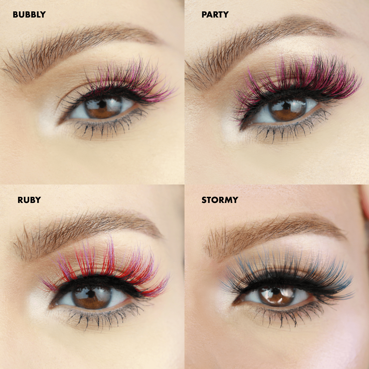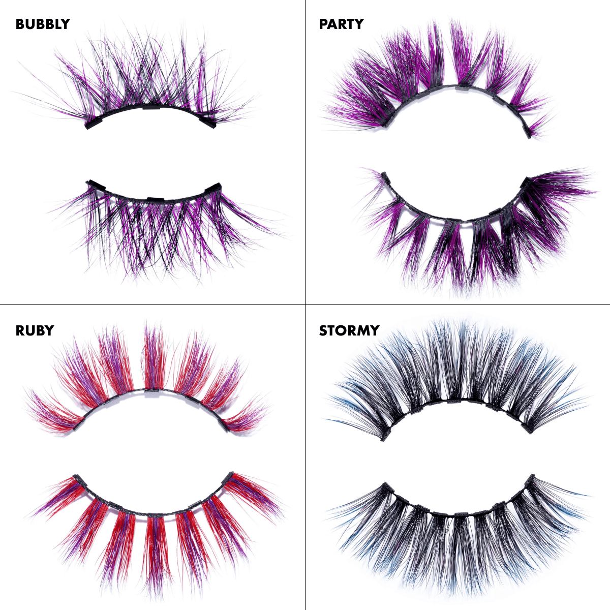 Four bold magnetic lash styles for a pop of color and endless looks.